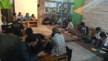 Menjelang magrib, kami masih di warkop, orang-orang sudah berduyun-duyun menuju musholah dan masjid. Kami menunggu kedatangan saudara Fatihin IC, Mantan Ketua KotaSeger, yang berencana ikut serta. Karena sedikit telat, kami tinggal meluncur, dia menyusul langsung ke lokasi. Kami lanjut berjalan, dan sesampainya di POM timurnya pertigaan Betoyo, saya magriban. Lima belas menit kemudian melanjutkan perjalanan, syukurlah tidak terlalu macet, yang biasanya barisan Dump Truk mengisi jalan dari Panceng sampai Manyar. Pukul 18.48 WIB, sampai di Gresiknesia, Jl. Beton No. 07 Suci, Pongangan, Manyar, Gresik. Kedatangan kami disambut panitia dengan ramah. Kami pun masuk ke ruangan, tampak adanya sebuah perpustakaan, ini tempat kesukaan saya, dan teras menjadi lokasi diskusinya.