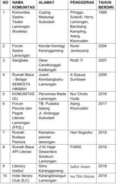 Peta Perkembangan Komunitas Sastra Lamongan Mutakhir