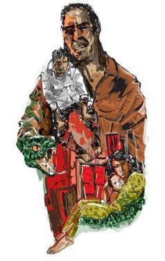 Cincin akik yang ia dapatkan dari pemilik rumah judi masih melingkar di jari kelingkingnya. Aku tak melihat bagian-bagian yang tajam pada cincin itu. Tapi mungkin saja cincin itu yang meninggalkan bekas seperti gigitan ular.